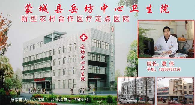 岳坊镇中心卫生院是具有历史优久、技术精湛的一所综合性医院。本院集医疗、预防、保健、康复、计划生育于一体的综合性的中心卫生院,功能齐全、设备先进、科室完备、技术力量雄厚等特点。